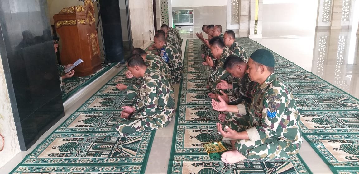 Dispen Kormar (Malang) Pelatih Puslatpurmar 4 Purboyo melaksanakan kegiatan Doa Bersama Jelang HUT Korps Marinir Ke 80 di Masjid Al Maajid Puslatpurmar 4 Purboyo Malang Selatan, Jumat ( 14/11/2025 ).