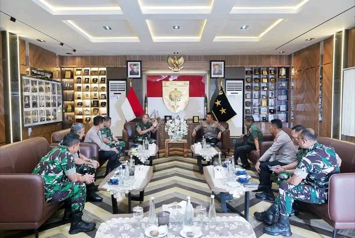 Pangdam XIV/Hsn menyambut hangat Kapolda Sulsel beserta rombongan. Pertemuan berlangsung dalam suasana penuh keakraban dan kekeluargaan, mencerminkan soliditas serta keharmonisan hubungan antara dua institusi terjalin dengan baik.