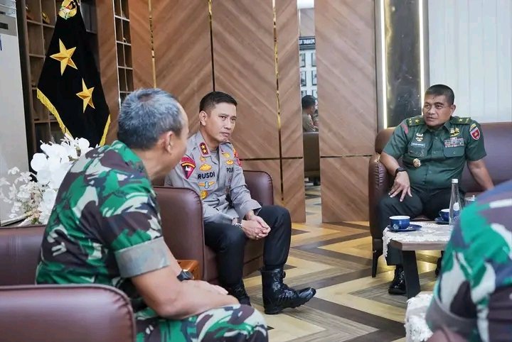 Makassar – Pangdam XIV/Hasanuddin Mayjen TNI Windiyatno didampingi sejumlah Pejabat Utama (PJU) Kodam menerima kunjungan silaturahmi dari Kapolda Sulsel Irjen Pol. Drs. Rusdi Hartono, M.Si., bersama rombongan, bertempat di Ruang Tamu Pangdam, Makodam, Jl. Urip Sumoharjo,Kota Makassar.Rabu (22/10/2025).