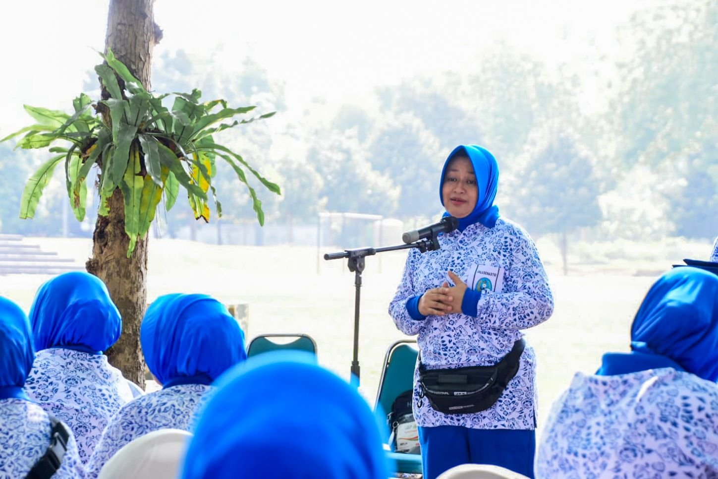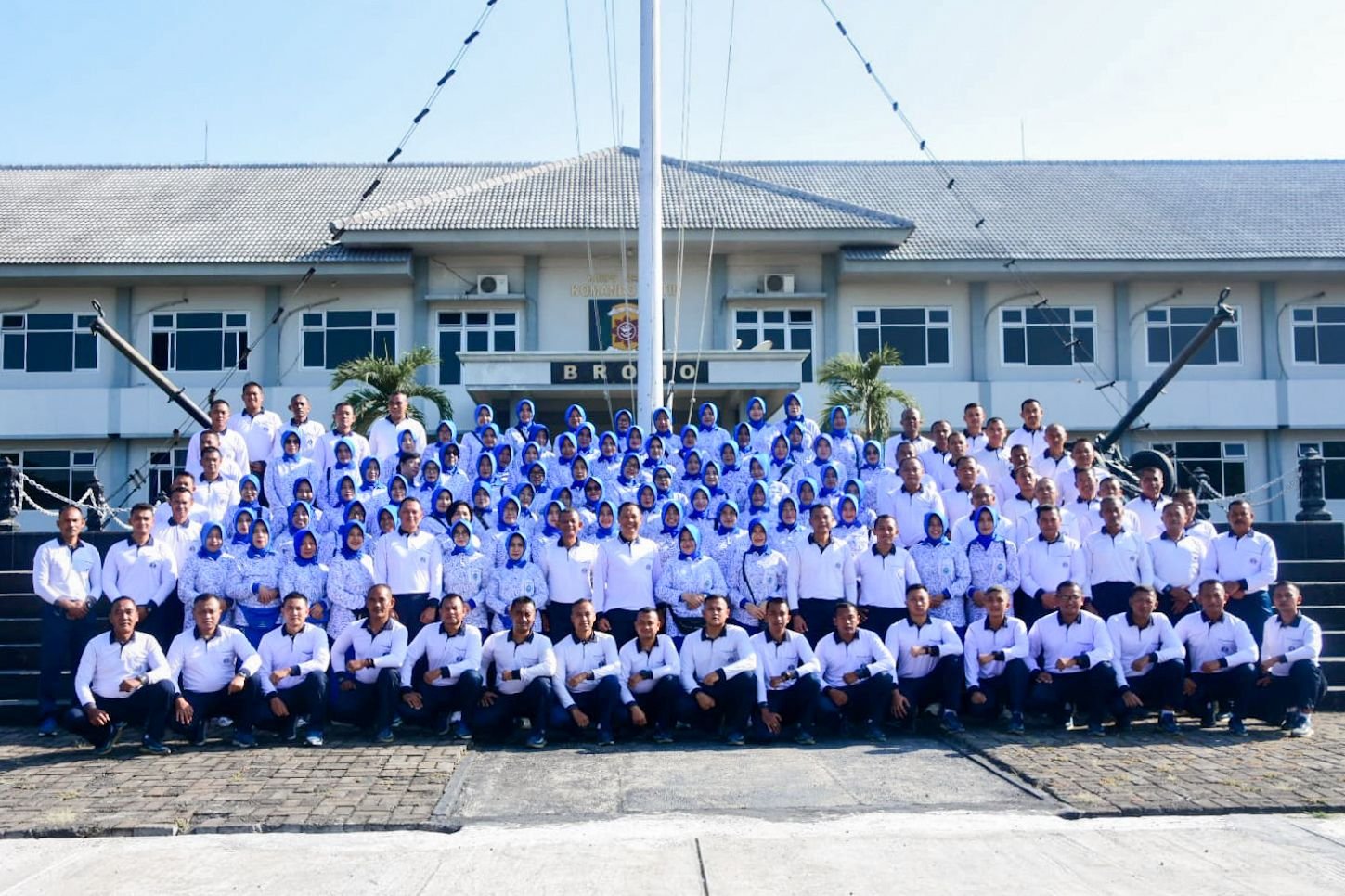 TNI AL, Dispen Kormar, Kolatmar (Pasuruan) – Ketua Cabang 5 Gabungan Jalasenastri Korps Marinir Ny. Emmy Agus Dwi Laksana memimpin pertemuan rutin dan olahraga bersama Cabang 5 Gabungan Jalasenastri Korps Marinir yang dihadiri oleh para Pengurus serta perwakilan tiap” Ranting A, B, C, dan F Cabang 5 PG Kormar, bertempat di Mako Kolatmar, Grati, Pasuruan. Selasa (14/10/2025).