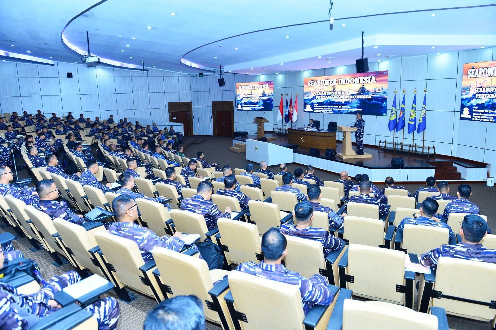 Komandan Sekolah Staf dan Komando Angkatan Laut (Danseskoal) Laksamana Muda TNI Ariantyo Condrowibowo menerima kedatangan Kepala Staf Angkatan Laut (Kasal) ke-24 Laksamana TNI (Purn) Prof. Dr. Marsetio dalam rangka memberikan kuliah umum kepada Perwira Siswa Pendidikan Reguler (Pasis Dikreg) Seskoal angkatan ke-64 TA 2025 dengan judul “Sea Power Indonesia dalam Transformasi Pertahanan Indonesia”, bertempat di amphiteater gedung Samadikun Seskoal, Cipulir, Jakarta Selatan, Kamis (9/10/2025).