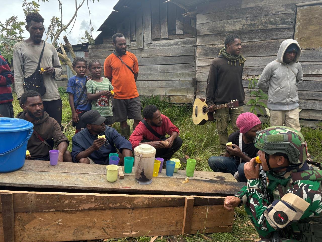 Pos Serambakon Satgas Yonif 751/VJS Peduli Duka Warga Seramkatop dan Hadir Menjadi Pelipur Lara
