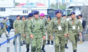TNI AL, Dispen Kormar Sorong. Prajurit Catur Daya Cakti Yontankfib 3 Marinir laksanakan Apel Khusus Komandan Pasmar 3 dan Halal Bihalal yang di selenggarakan di Lapangan Apel Brigif 3 Marinir, Ksatrian Abraham Octavianus Atururi (AOA), Kel. Majener Distrik Salawati, Kab. Sorong, Prov. Papua Barat Daya. Selasa (08/04/2025).