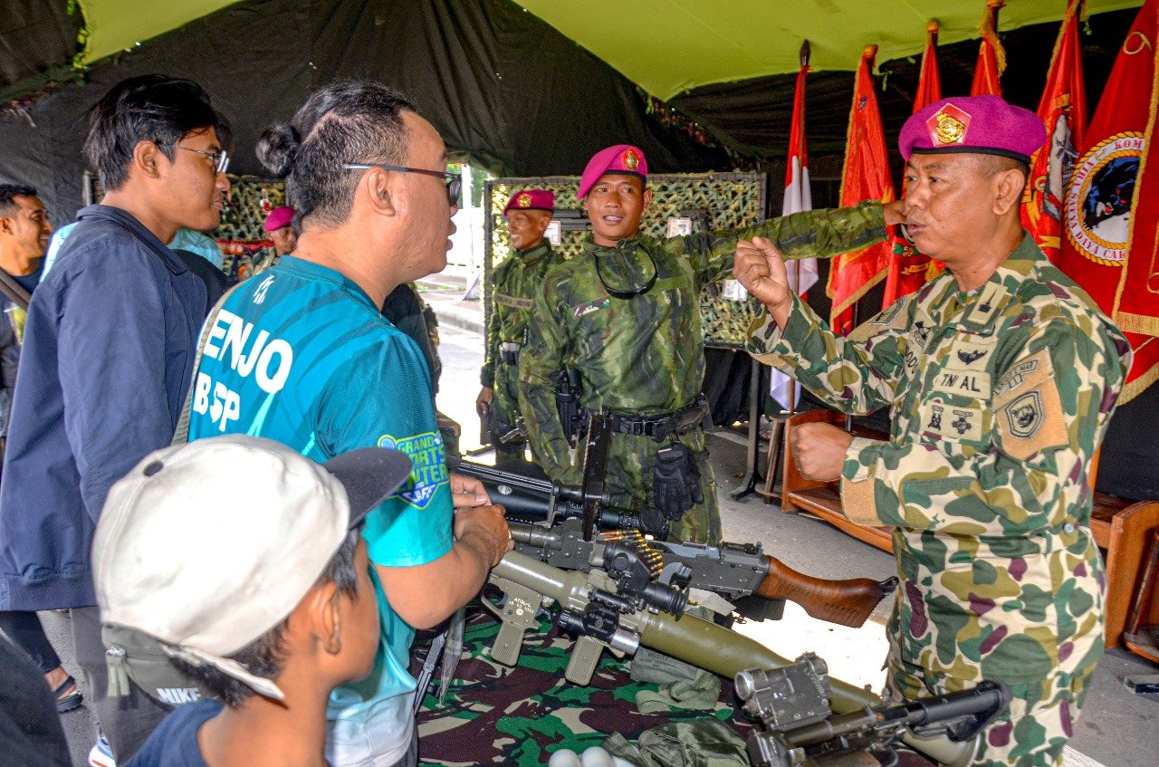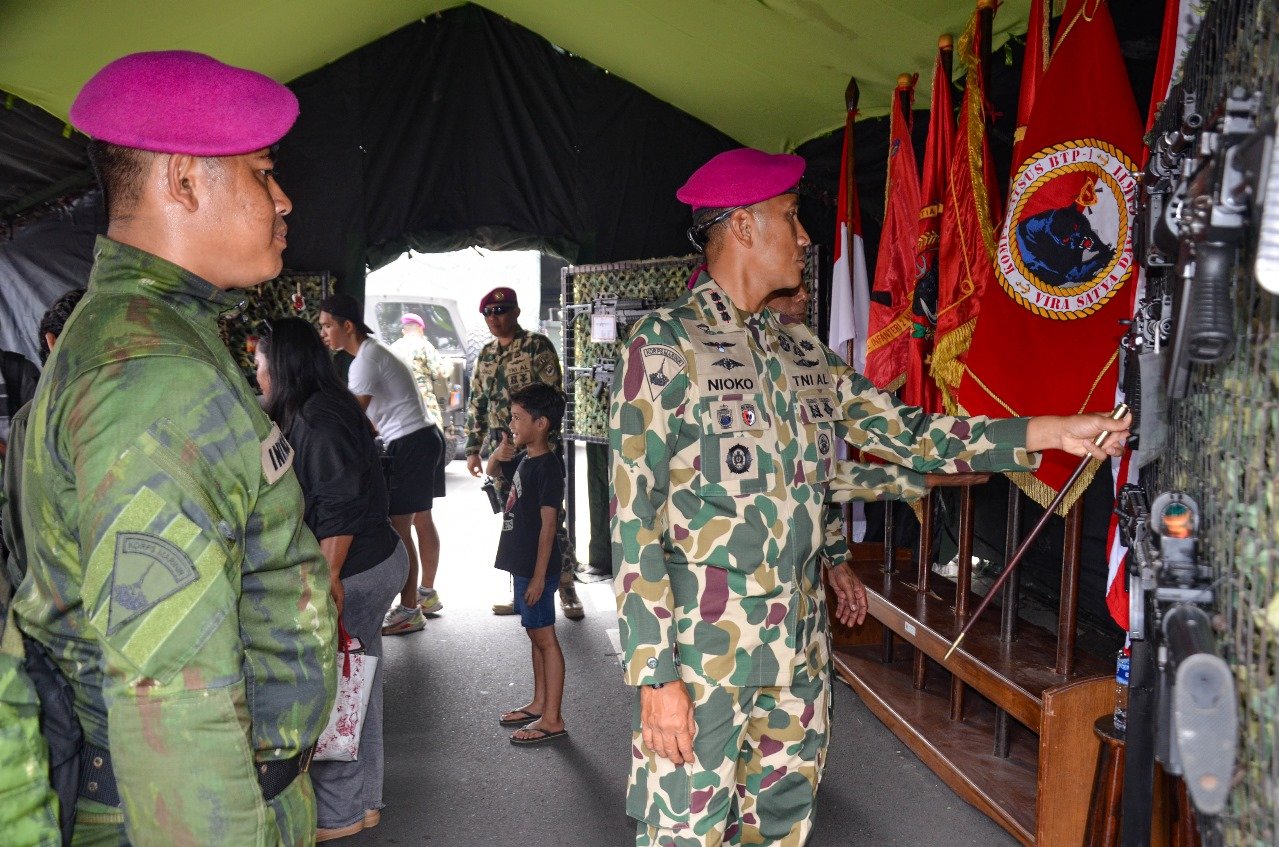 TNI AL, Dispen Kormar (Surabaya). Guna menyambut perayaan Hari Ulang Tahun (HUT) ke 80 Korps Marinir tahun 2025, prajurit Batalyon Infanteri 1 Marinir mendukung Pasmar 2 untuk memeriahkan pameran Marines Day Tahun 2025 serta menyapa Masyarakat Surabaya di Jl. Taman Apsari, Embong Kaliasin, Genteng, Surabaya, Jawa Timur. Minggu (09/11/2025)