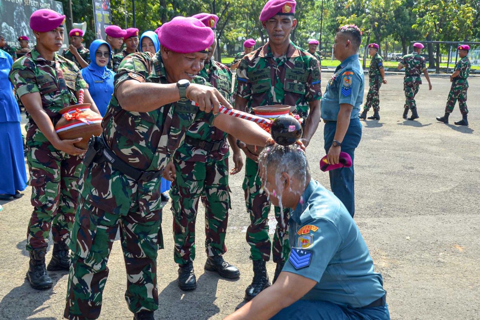 Upacara kenaikan pangkat tersebut diawali dengan penyematan pangkat baru oleh inspektur upacara kepada perwakilan prajurit yang naik pangkat dan dilanjutkan dengan tradisi penyiraman air bunga.