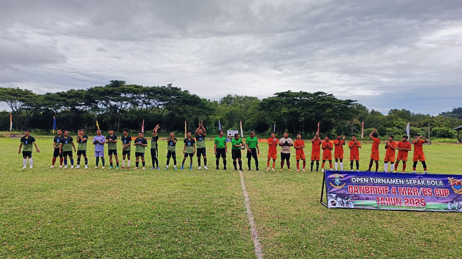 TNI AL, Dispen Kormar (Lampung) – Tim Sepak Bola Puslatpurmar-8 FC Teluk Ratai mengikuti Open Tournamen Sepak Bola Danbrigif 4 Mar/BS Cup Tahun 2025 dalam rangka memperingati Hari Ulang Tahun (HUT) ke-80 Korps Marinir yang berlangsung di lapangan sepak bola Brigif 4 Mar/BS, Piabung, Ds. Sanggi, Kec. Padang Cermin, Kab. Pesawaran-Lampung. Rabu, (29/10/2025).