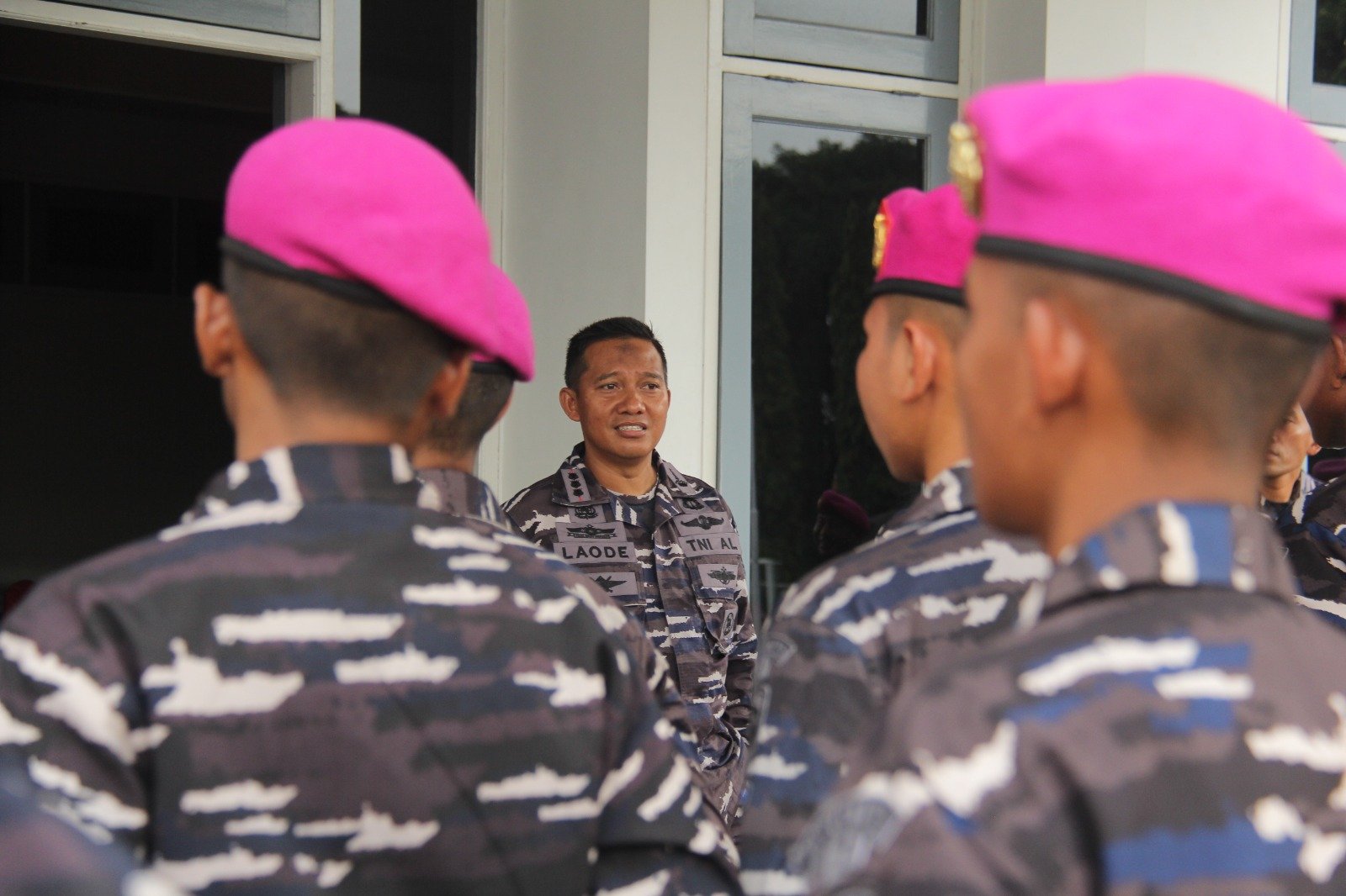 TNI Angkatan Laut, Dispen Kormar (Surabaya). Komandan Resimen Kavaleri 2 Marinir Kolonel Mar La Ode Jimmy Herizal Rahman, M.Tr.Hanla., M.M., menyambut prajurit remaja Bintara dan Tamtama Kavaleri, mantan Siswa Pendidikan Pertama Dikmaba Angkatan 44/2 dan Dikmata Angkatan 44/2 TNI AL TA. 2025 di Kesatrian Marinir Soepraptono, Menkav 2 Mar, Semarung Ujung Surabaya. Jumat (24/10/2025).