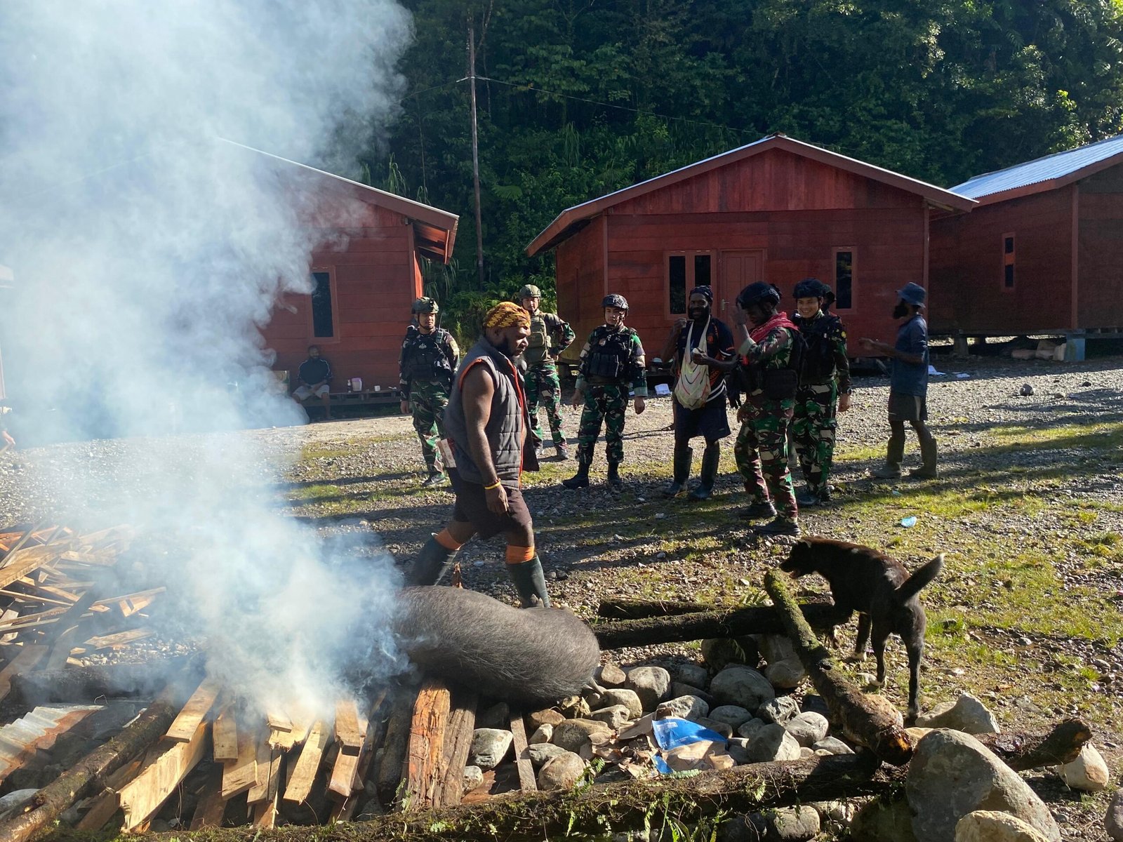 Satgas TNI Gelar Acara Adat Bakar Batu Bersama Masyarakat Kampung Banti