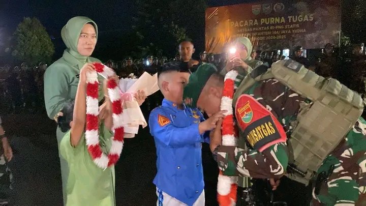 Curup – Sebanyak 450 Prajurit Yonif 144/JY yang tergabung dalam Satuan Tugas Pengamanan Perbatasan (Satgas Pamtas) RI-Papua Nugini telah kembali, setelah melaksanakan tugas selama 15 bulan 5 hari dan disambut dengan penuh haru oleh Kakorum dan para Keluarga serta rekan-rekan Prajurit, bertempat di Mako Yonif 144/Jaya Yudha. Rabu malam (22/10/2025).