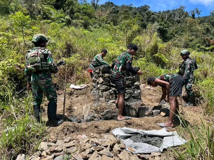 Puncak Jaya, Papua Tengah – Di tengah beratnya tantangan tugas di wilayah pegunungan Papua, prajurit Satgas Yonif 743/PSY kembali menunjukkan kepedulian nyata terhadap kebutuhan dasar masyarakat. Kali ini, melalui tangan-tangan penuh ketulusan, personel Pos Tirineri membangun bak penampungan air bersih dan MCK bagi warga di Kampung Tirineri, Distrik Yambi, Kab. Puncak Jaya, Papua, Selasa (21/10/2025).