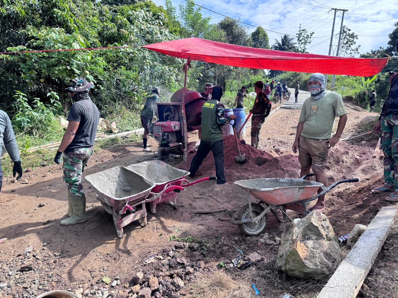 Kehadiran Satgas TMMD telah menyatukan TNI dan rakyat dalam satu semangat kebersamaan. Para prajurit bekerja berdampingan dengan warga, tanpa sekat pangkat atau jabatan. Di sela tumpukan semen dan pasir, terlihat tawa yang tulus, menggambarkan hubungan yang lahir dari keikhlasan. “Kami senang bisa bekerja bersama bapak-bapak TNI. Jalan ini akan sangat membantu kami membawa hasil panen,” ujar salah satu warga dengan senyum haru.