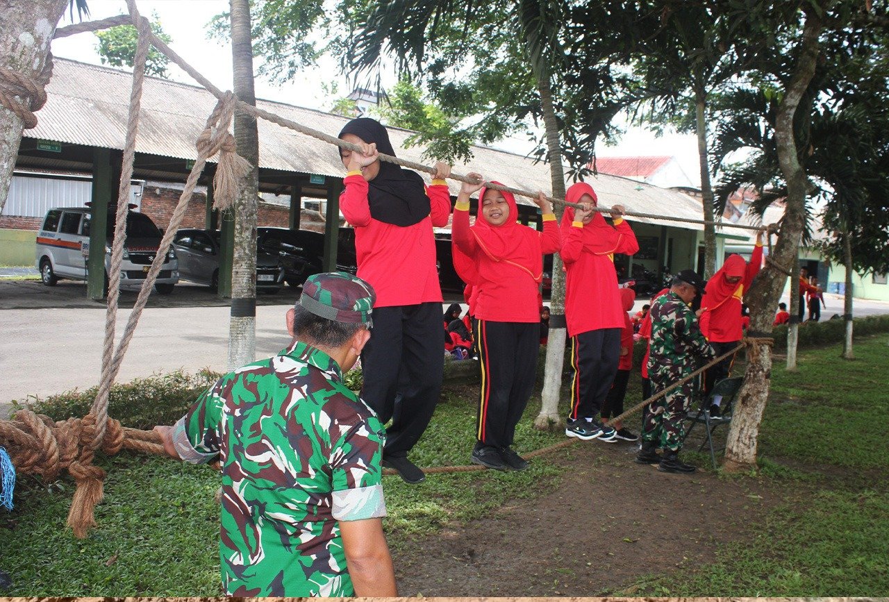 Keseruan outing class belum berakhir. Para prajurit juga memperagakan latihan penyeberangan tali satu yang telah disesuaikan dengan standar keamanan anak-anak. Kesempatan mencoba berjalan di atas tali menjadi pengalaman tak terlupakan bagi para siswa. Keceriaan dan gelak tawa pun menghiasi jalannya kegiatan.