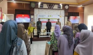 Suasana semakin hidup ketika Pelda Komarul Huda mengajak seluruh peserta didik berdiri tegap menyanyikan lagu Indonesia Raya. Lantunan suara puluhan siswa menggema di halaman Makodim, menciptakan momen haru dan penuh kebanggaan. Beberapa guru tak menyia-nyiakan kesempatan untuk merekam momen tersebut sebagai dokumentasi.