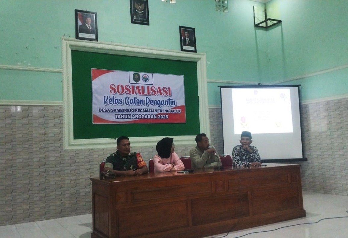 Trenggalek – Upaya mewujudkan kesejahteraan dan kemajuan masyarakat desa terus digalakkan melalui sinergi antara TNI-Polri dan pemerintah daerah. Salah satu bentuk konkret kolaborasi itu terlihat dalam kegiatan Sosialisasi Kelas Calon Pengantin (Catin) yang digelar di Balai Desa Sambirejo, Kecamatan Trenggalek, Kabupaten Trenggalek, Kamis (13/11/2025).