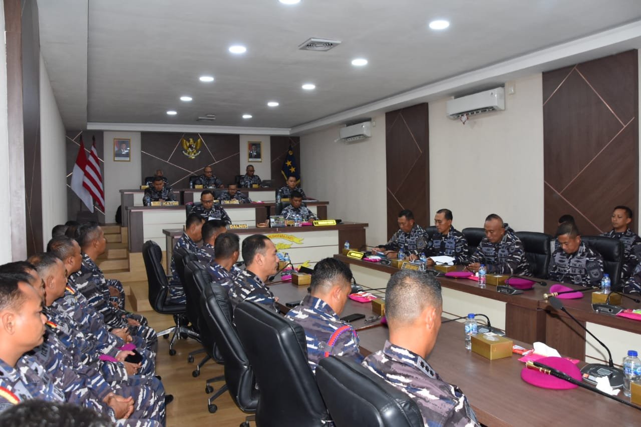 TNI AL, Dispen Kormar, Kolatmar (Sidoarjo) – Komandan Komando Latihan Marinir (Dankolatmar) Brigjen TNI (Mar) Agus Dwi Laksana Putra, beserta Perwira Staf Kolatmar mengikuti taklimat akhir Audit Kinerja Inspektorat Jenderal Angkatan Laut (Itjenal) Tahun 2025 di Pasmar 2, Kolatmar, Lanmar Surabaya, dan Rumkitalmar Ewa Pangalila yang dipimpin oleh Iropslat Itjenal Laksamana Pertama TNI Kunto Tjahjono, S.E., M.Han., M.Tr.Opsla., CRMP., selaku Dalnis, bertempat di Ruang Puskodalops Pasmar 2, Gedangan, Sidoarjo. Jumat (24/10/2025).