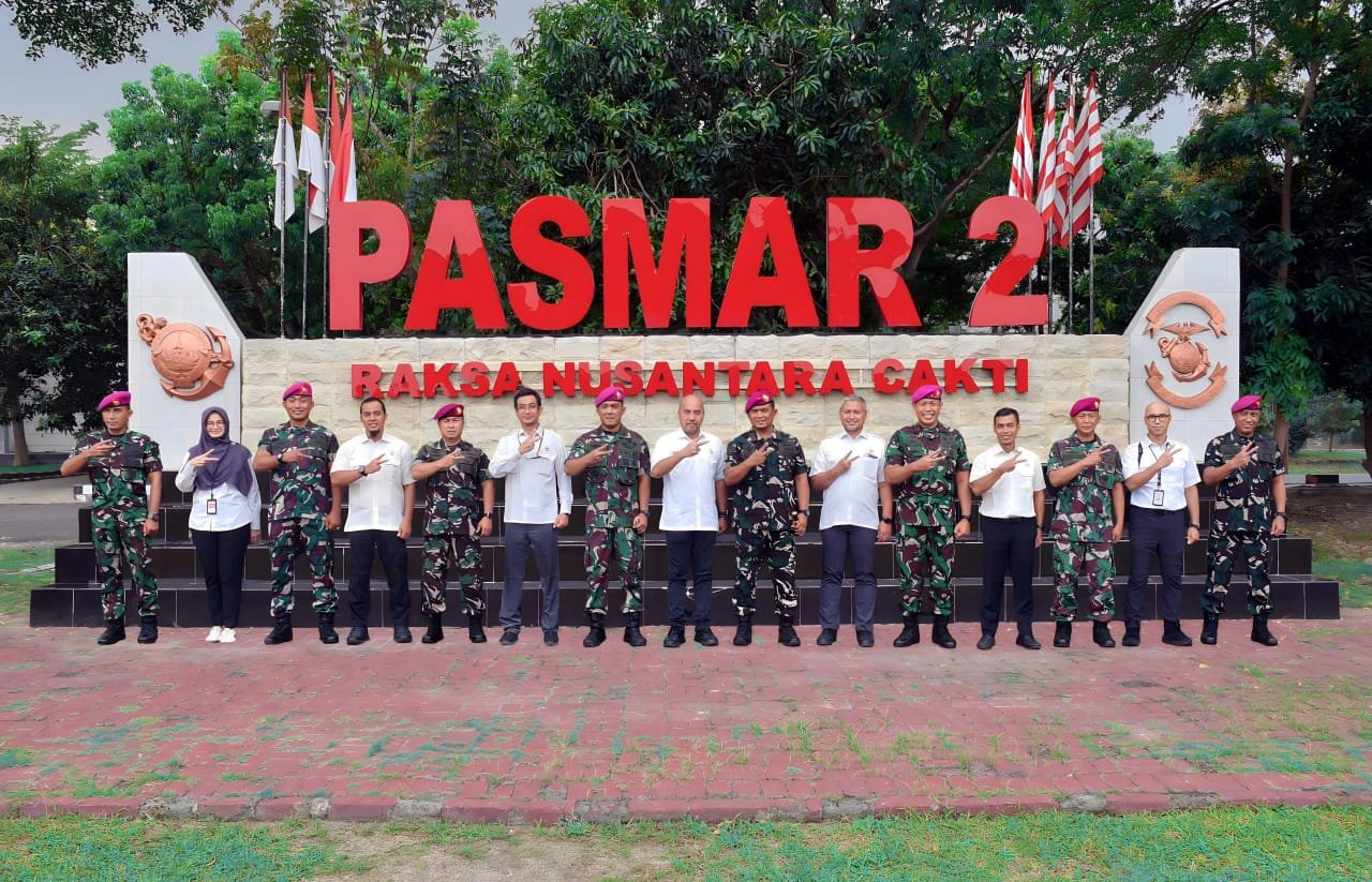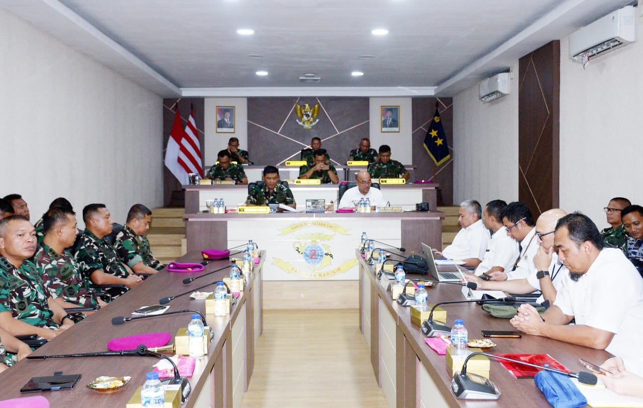 Dispen Kormar, TNI AL (Sidoarjo). Komandan Pasmar 2 (Danpasmar 2) Mayjen TNI (Mar) Dr. Oni Junianto menyambut kedatangan Tim Audit Badan Pemeriksa Keuangan Republik Indonesia (BPK RI) pada taklimat awal BPK RI di Puskodalops Mako Pasmar 2, Kesatrian Marinir Moekijat, Gedangan, Sidoarjo, Senin (27/10/2025).