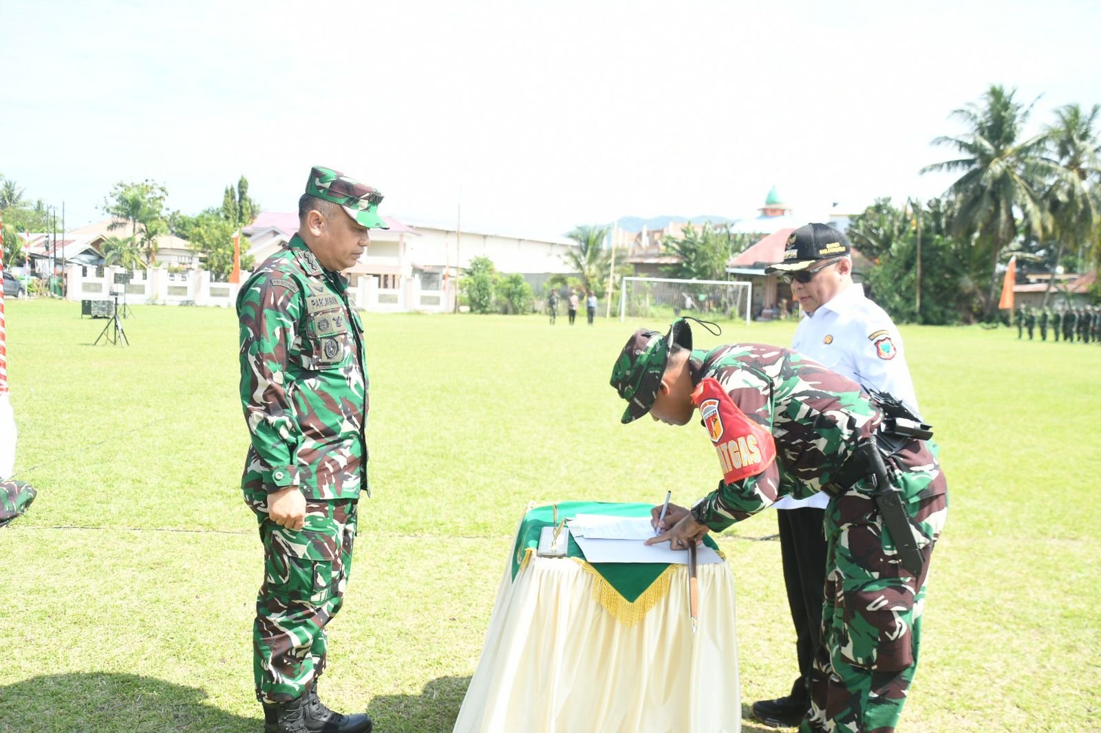 Upacara yang berlangsung khidmat ini mengusung tema “Dengan Semangat TMMD Mewujudkan Pemerataan Pembangunan dan Ketahanan Nasional di Wilayah” serta ditandai dengan penandatanganan naskah berita acara kegiatan dan penyerahan alat perlengkapan TMMD secara simbolis oleh Bupati Gorontalo H. Sofyan Puhi, S.T., kepada Dandim 1315/Kabupaten Gorontalo Letkol Arh Roma Laksana Yudha, S.A.P., M.Sos.