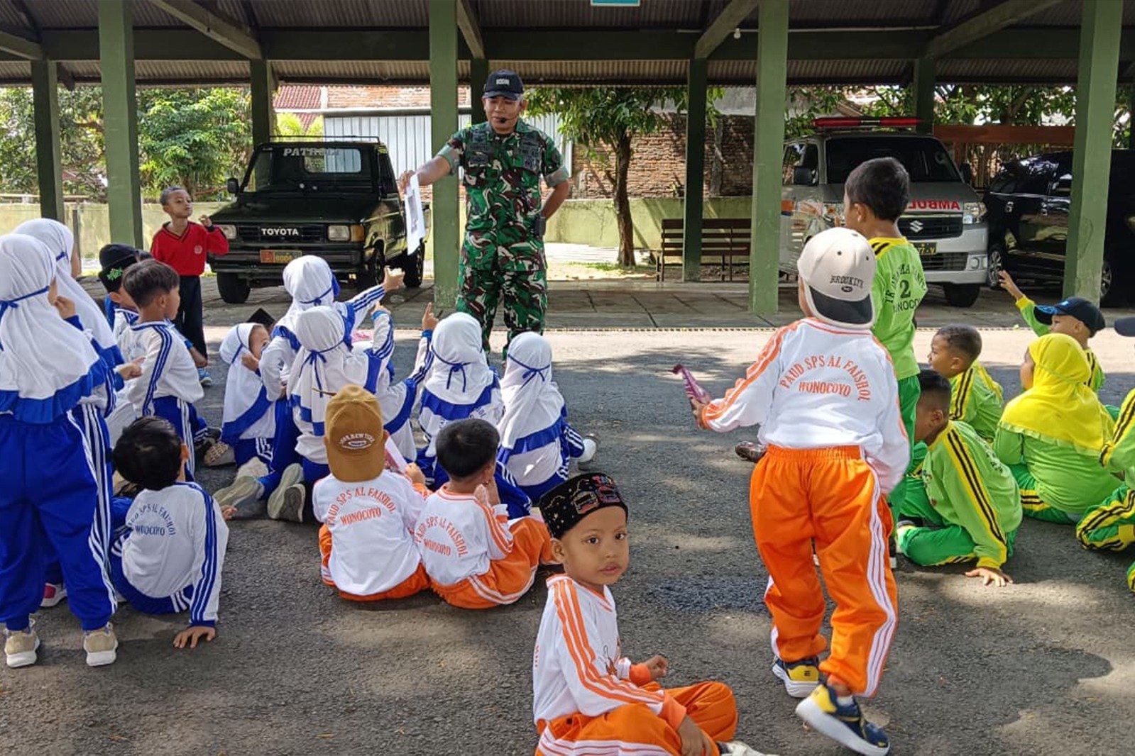 Trenggalek – TNI melalui satuan teritorialnya kembali memperlihatkan wajah humanis dalam membangun karakter bangsa sejak usia dini. Di Kabupaten Trenggalek, prajurit Kodim 0806 menjadi ikon baru dalam kegiatan pendidikan nonformal bagi anak-anak sekolah. Melalui program outing class yang sarat nilai kebangsaan, para pelajar PAUD, TK, hingga SD mendapatkan pengalaman unik belajar langsung tentang Wawasan Kebangsaan (Wasbang) dan latihan baris-berbaris (PBB) bersama prajurit TNI.