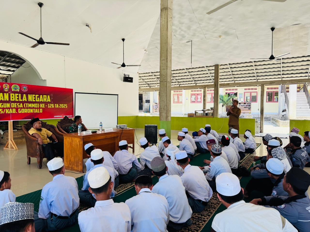 Gorontalo, 21 Oktober 2025 — Suasana hangat terasa di Aula SMK Al-Qur’an dan Dakwah Alam, Desa Talumelito, saat ratusan siswa mengikuti kegiatan Penyuluhan Wawasan Kebangsaan (Wasbang) dalam rangka program TNI Manunggal Membangun Desa (TMMD) Ke-126 Kodim 1315/Kabupaten Gorontalo. Kegiatan ini menjadi wujud nyata kepedulian TNI terhadap pembentukan karakter generasi muda di samping pembangunan fisik di wilayah pedesaan.
