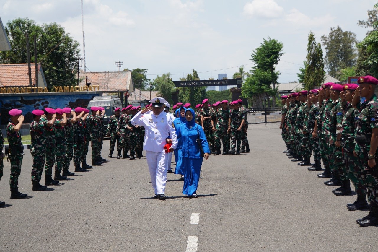 TNI AL, Dispen Kormar (Surabaya). Prajurit Detasemen Intai Para Amfibi 2 Marinir melaksanakan Upacara pelepasan Prajurit Purna Tugas dan upacara kenaikan pangkat Perwira, Bintara dan Tamtama bertempat di Lapangan apel Kuru Setra Denipam 2 Marinir Kesatrian Marinir Sutedi Senaputra, Karangpilang, Surabaya. Senin (13/10/2025).