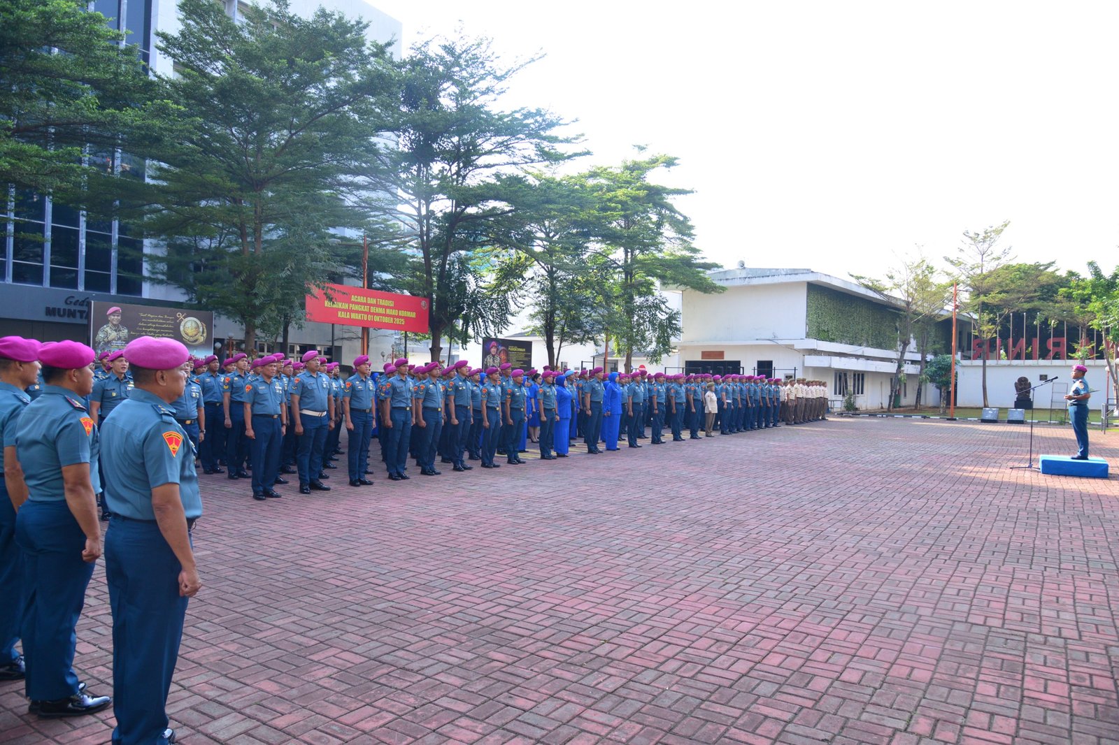Jakarta, (tanggal lengkap) — Markas Komando Korps Marinir (Mako Kormar) menggelar upacara tradisi kenaikan pangkat bagi prajurit dan PNS periode 01 Oktober 2025, bertempat di Lapangan Apel Barungu Mako Kormar, Kwitang, Jakarta Pusat.