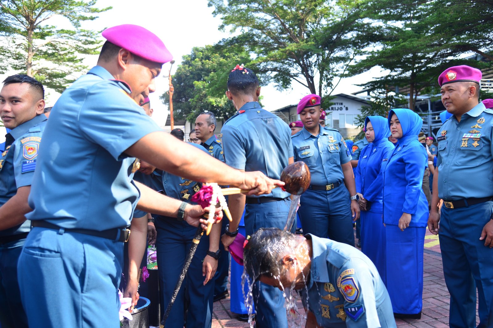 Usai pelaksanaan upacara, kegiatan dilanjutkan dengan tradisi penyiraman air bunga dan ucapan selamat dari para Prajurit Mako Kormar, sebagai bentuk penghargaan dan kebanggaan atas capaian para prajurit yang memperoleh kenaikan pangkat.