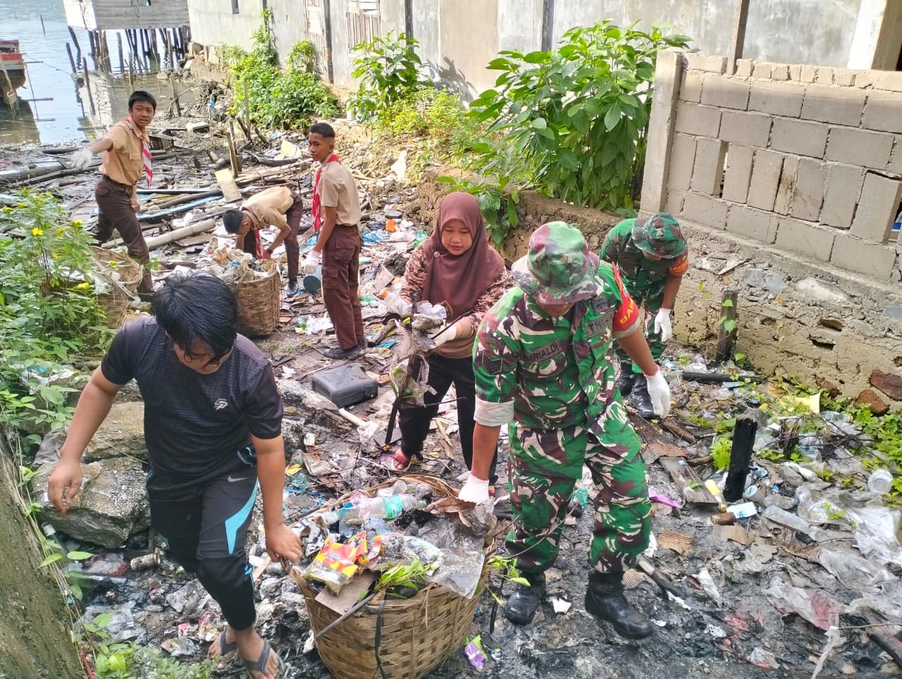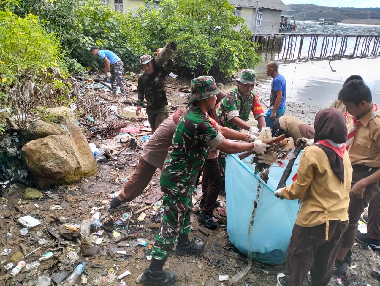 Babinsa Koramil 07/Tambelan bersama warga Desa Kukup melaksanakan kegiatan gotong royong membersihkan lingkungan pemukiman dan area tepi laut. Kegiatan ini dipimpin oleh Peltu M. Hasanuddin dan Kades Kukup, serta dihadiri oleh perangkat desa, anggota Pos TNI AL Tambelan, pembina dan anak Pramuka Gudep SMAN 1 Tambelan, dan warga Desa Kukup, Sabtu (18/10/2025).