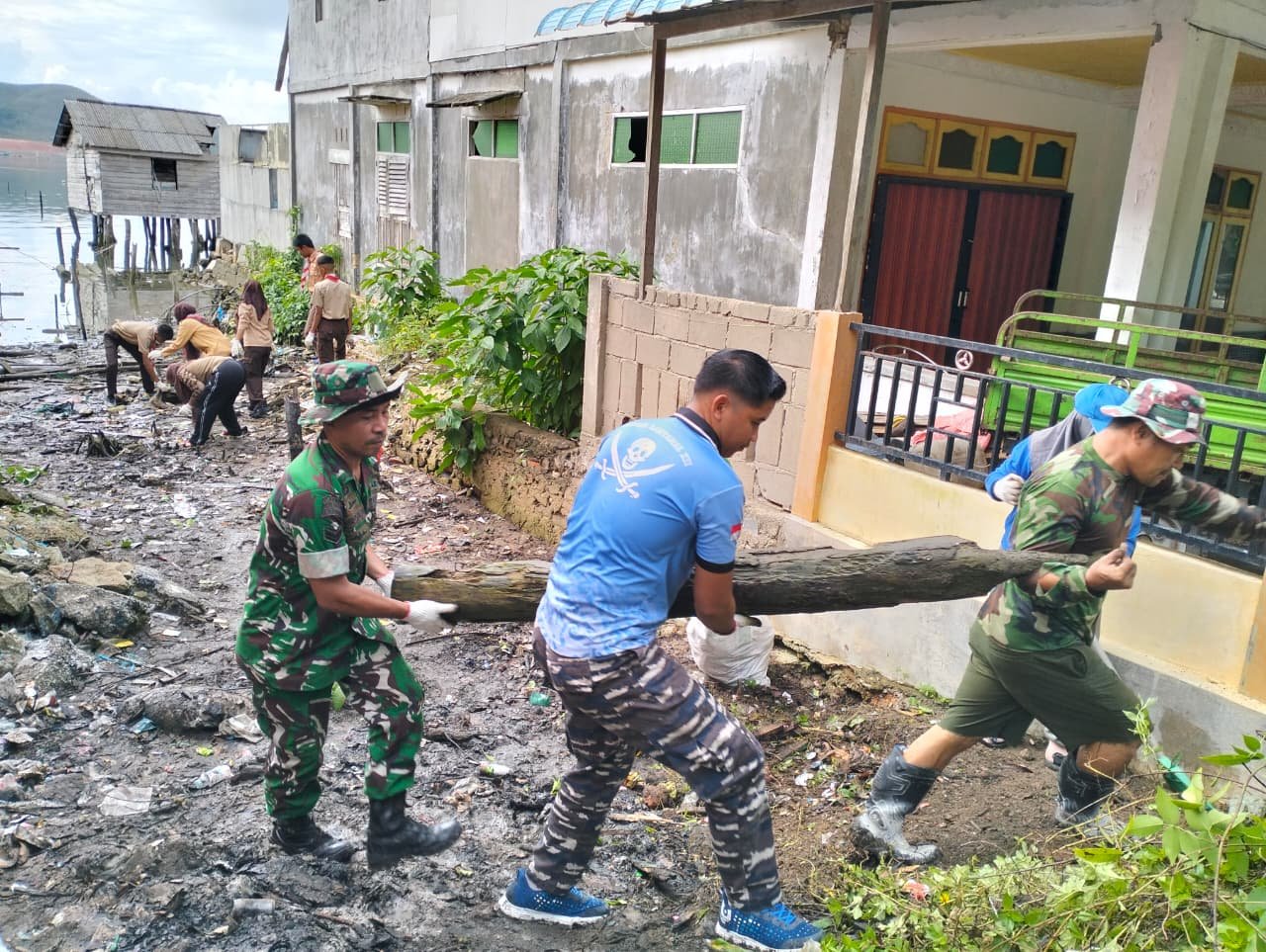Wujud Kemanunggalan TNI dengan Rakyat : Personel Koramil 07/Tambelan Gotong Royong bersama Warga Ciptakan Lingkungan Bersih dan Sehat