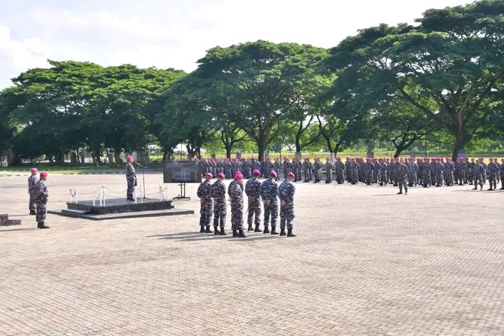 TNI AL, Korps Marinir, Brigif 4 Mar/BS (Pesawaran) Komandan Brigade Infanteri 4 Marinir/BS (Danbrigif 4 Mar/BS), Kolonel Marinir Supriadi Tarigan, S.I.P., M.M., memimpin apel khusus yang dilaksanakan di lapangan apel Mako Brigif 4 Mar/BS Piabung, Kec. Padang Cermin, Kab. Pesawaran Lampung, Rabu (15/10/2025).