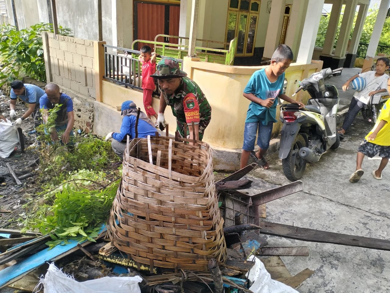 Wujudkan Lingkungan Bersih,Sehat dan Asri, Koramil 07/Tambelan Rutin Ajak Masyarakat Gotong Royong
