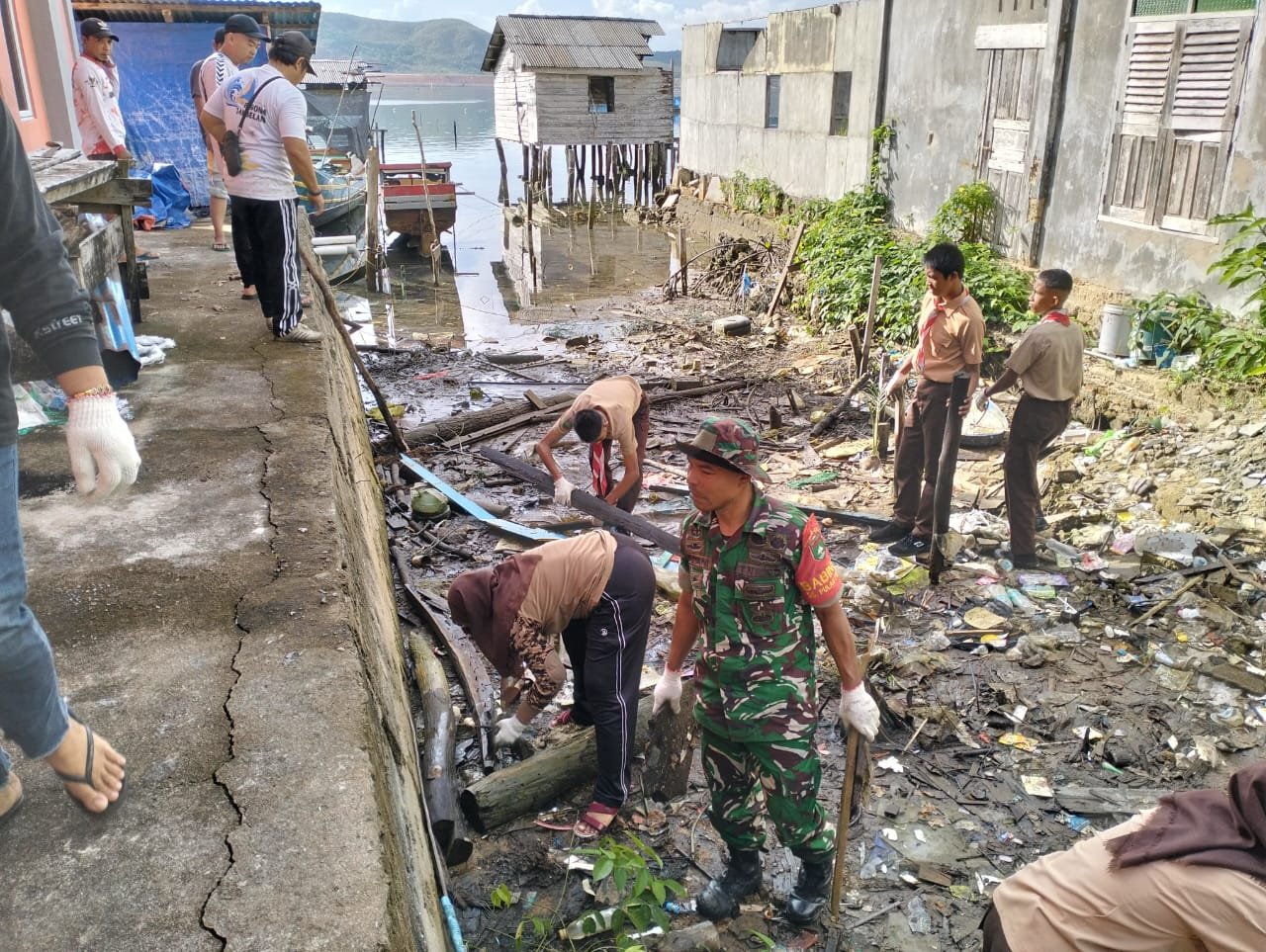 Babinsa Koramil 07/Tambelan Sertu Ruksin bersama masyarakat Desa Kukup melaksanakan kegiatan gotong royong membersihkan sampah di lingkungan pemukiman dan tepi laut. Kegiatan ini dihadiri oleh Kades Kukup, Sekdes, BPD, Kadus, RT, Pembina Gudep Pramuka, Babinpotmar, dan masyarakat, Minggu (19/10/2025)