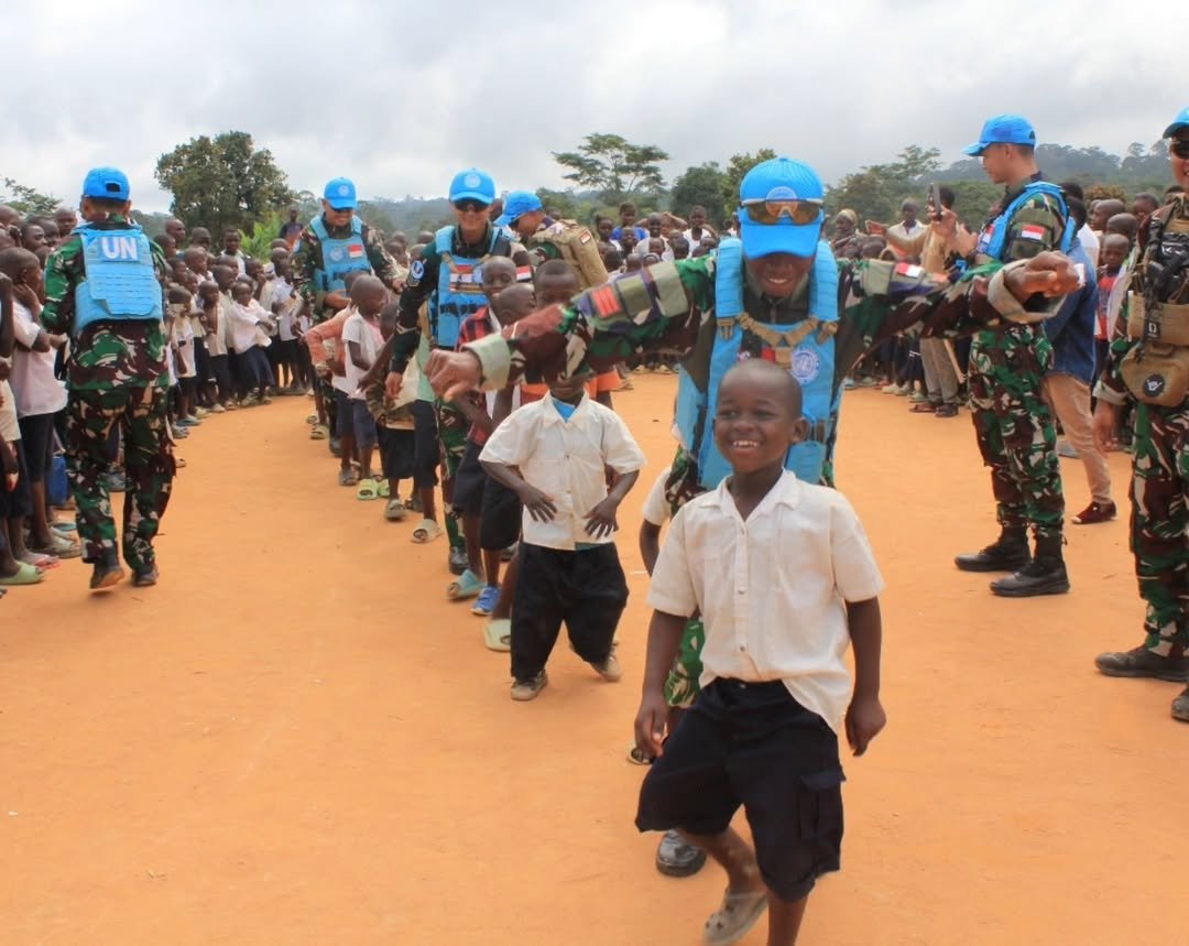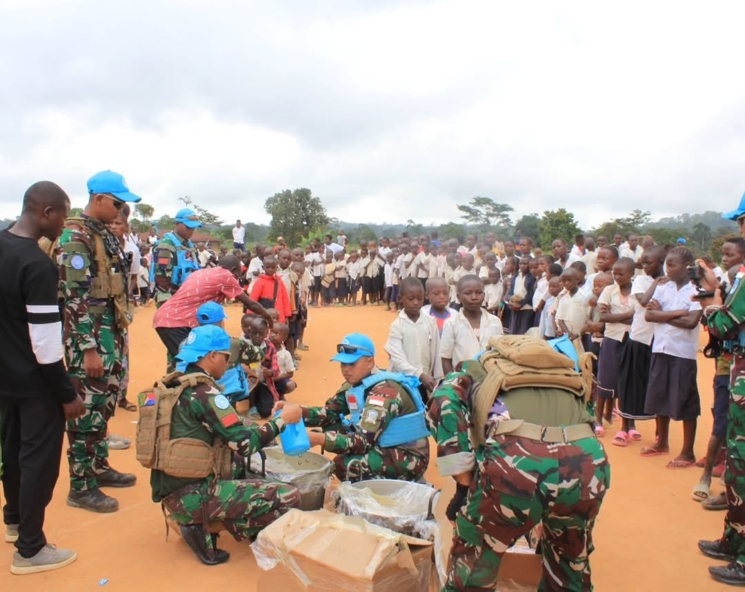 OKEBUNG|Kolonel Inf Fardin Wardhana, M.P.M, Komandan Satgas Yonif 412 Indo RDB XXXIX-G MONUSCO beserta rombongan TOB Tchabi menyambangi Premier School Tchabi Center dalam rangka melaksanakan kegiatan CIMIC (Civil Military Cooperation) di sela-sela kunjungan di TOB Tchabi pada hari Jumat. (7/11/2025).