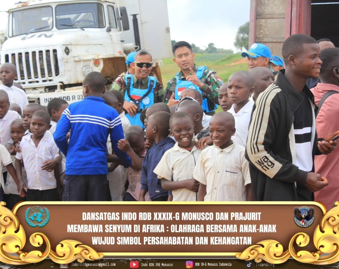Dengan didampingi komandan kompi Tchabi Major Inf Andhika beserta 20 prajurit INDO RDB XXXIX-G MONUSCO ,1 anggota CLA dan 2 anggota FARDC , Dansatgas menyambangi sekolah binaan yang berada diwilayah TOB Tchabi ini guna memberikan motivasi kepada anak-anak sekolah dasar serta berinteraksi langsung agar mempererat hubungan antara Prajurit dan masyarakat setempat khususnya generasi muda.