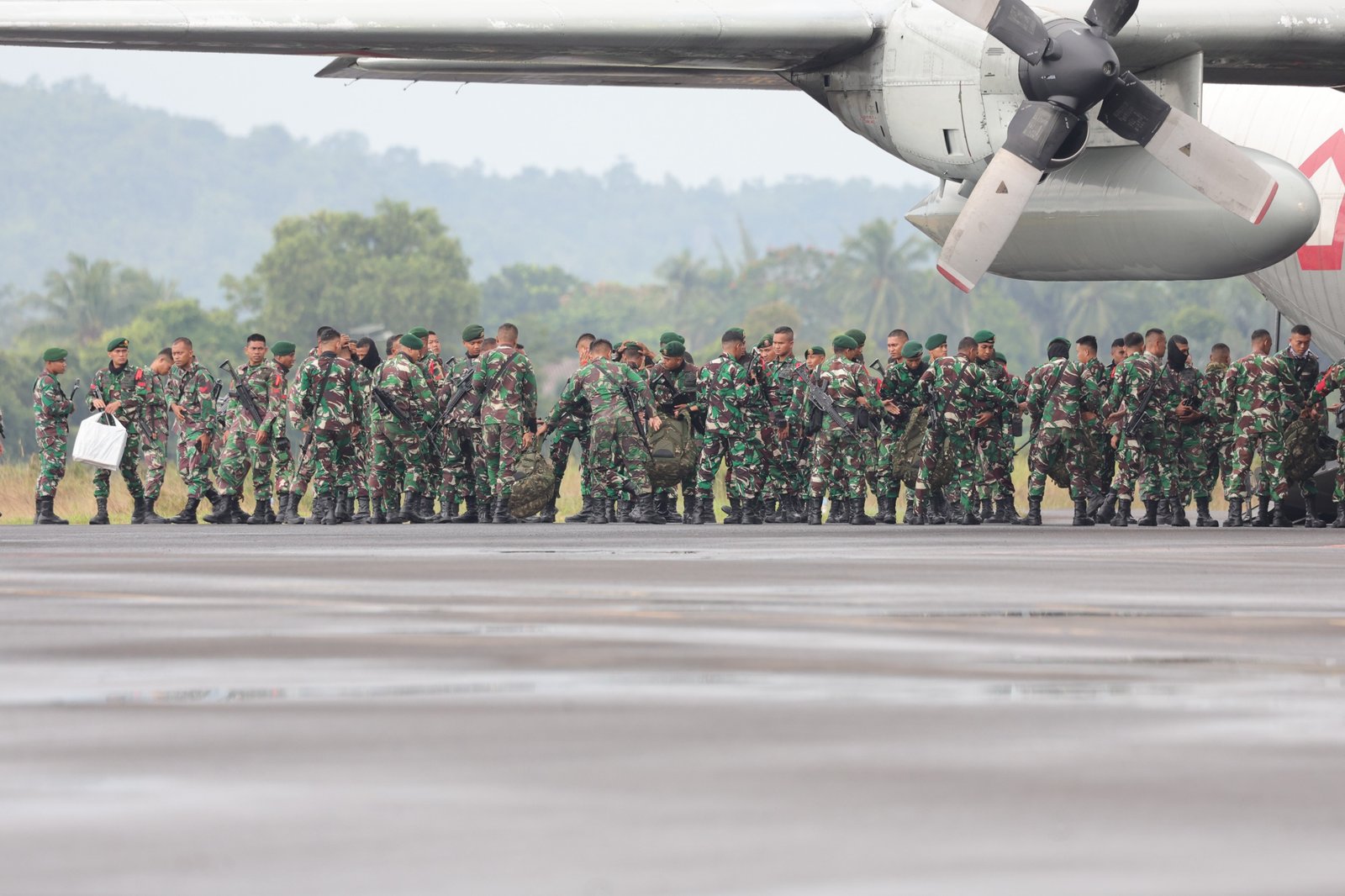 Babel – Yonif 501 Kostrad menggunakan pesawat C-130 Hercules tiba di Bandara Depati Amir, Bangka Belitung, untuk mengikuti Latihan Komando Gabungan (Kogab) TNI. Latihan ini digelar guna meningkatkan kesiapsiagaan TNI dalam menghadapi berbagai ancaman serta menjaga keamanan wilayah strategis di kawasan Bandara Depati Amir, Selasa (18/11/2025).